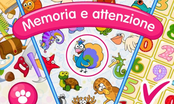 All'interno di questa applicazione, i bambini intraprenderanno un viaggio di scoperta delle proprie abilità. Attività come "Trova tutti gli oggetti" mirano a migliorare la concentrazione e l'osservazione, mentre "Chi ha il numero?" e "Memorizza le immagini" sono eccellenti per potenziare la memoria visiva e auditiva. La "Tavolozza" e il "Memory game" perfezionano ulteriormente le capacità mnemoniche, cruciali per assimilare rapidamente nuove informazioni. Inoltre, la "Reazione" allena l'attenzione selettiva, insegnando ai bambini a filtrare gli stimoli e a rispondere in modo mirato. Queste esperienze ludiche sono fondamentali per sviluppare una solida memoria di lavoro e preparare i piccoli a leggere, scrivere e calcolare con maggiore fluidità, riducendo significativamente gli errori tipici delle prime fasi di apprendimento.